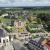 Photographie d'un village vue du ciel dans un paysage de montagne en hivers