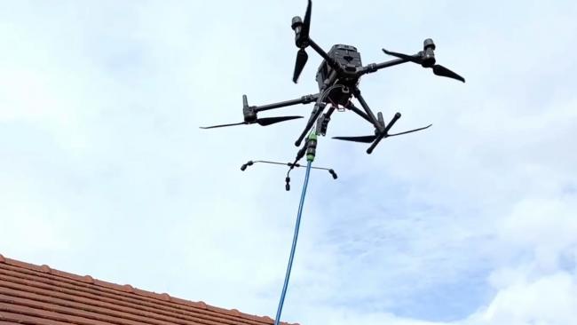 Le drone en plus de nettoyer ou de démousser, permet aussi d’hydrofuger une couverture ou les murs en pulvérisant un produit hydrofuge, imperméabilisant la surface tout en la laissant respirer et empêchant les mousses ou salissures de revenir.